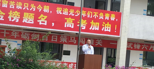 该校党支部书记、校长亢智勇同志对莘莘学子提出殷切希望。他鼓励考生首先要树立必胜信念,要有端正的态度,要有坚强的意志和毅力,更要讲究答题的方法和技巧。他还叮嘱每一个学生准备好各种物资,包括生活用品,学习考试用品和考前复习资料。他还提醒每一位考生要注意各项考场事项,不留遗憾。最后他还寄语考生:“ 壮志凌云决战高考冲霄汉,豪情似海,勇夺六月跨龙门;越雄关自应厉兵秣马,夺要隘更当破釜沉舟。”