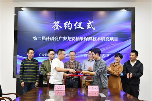 11月2日,在广安市科协、广安区科协和雅安市科协、雨城区科协的牵线搭桥下,利用“天府科技云”平台,让广安龙安柚有限发展公司与四川农业大学对上了眼,“广安龙安柚果保鲜技术研究”项目得到转化合作。