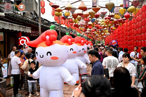 活动期间,“萌趣联盟大巡游” 妥妥成了本次活动的一大亮点!10 月 1 日下午,萌趣 IP “凉嘟嘟” 与簪花音悦快闪秀组队亮相 —— 这支特别的巡游队伍首次穿梭在洛带古镇的街巷里,走着走着就停下为大家秀一段萌趣混搭时尚的快闪舞蹈,瞬间吸引无数游客驻足围观。还有不少小朋友凑上前,拉着凉嘟嘟的手合影,满心欢喜地沉浸在热闹的节日氛围里。