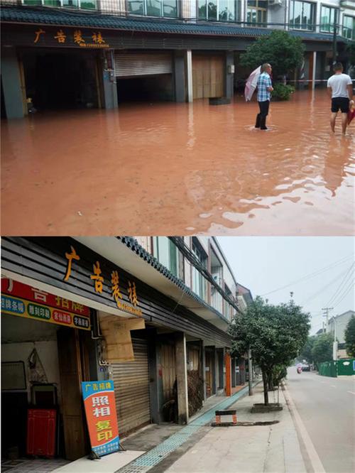 上图:雨水倒灌进入丹棱河湾村5组农户家中;下图:新开挖的排水沟有利于汛期排水