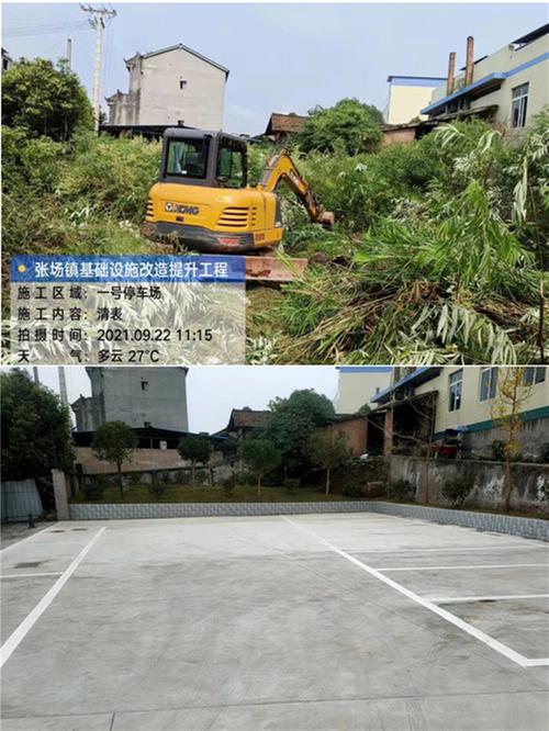 上图:改造前的张场小学家长接送学生专用停车场;下图:改造后的张场小学家长接送学生专用停车场
