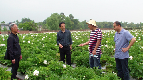 峨眉山市老科协会长张秀华对两家企业在科技引领下所取得的成就给予了充分肯定,对如何管理指明了方向,对如何组建合作社,带领百姓致富、以及未来产品的精深开发、科学发展提出了很好的建设性意见。峨眉山市老科协理事、高级农艺师雷方全针对在基地发现的芍药疫病,开出了良方,要求搞好病虫害综合防治,特别是芍药主要病害灰霉病、褐斑病、红斑病和锈病,主要虫害金龟子、介壳虫和蚜虫等的统防统治,防患于未然,确保芍药长势良好。