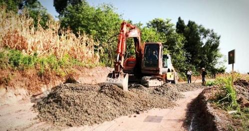 乡村振兴,修路先行,近日,笔者来到内江市市中区朝阳镇铧匠冲村村组道路修筑现场看到,运输砂石、水泥等材料的车辆来来往往,挖掘机、压路机等设备也运转不停,一条平整的道路已经初具雏形。
