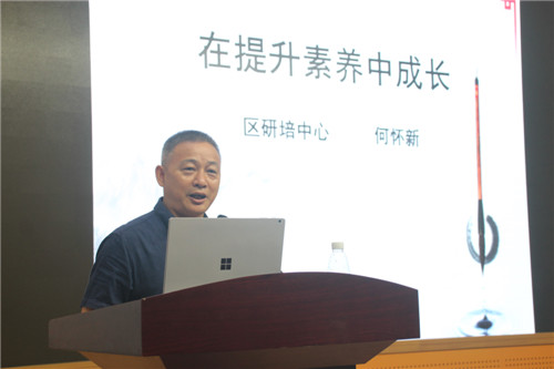 东坡区研培中心主任何怀新老师作《在提升素养中成长》讲座