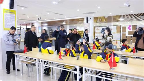 王树林一行在校门口欣赏了教师学生亲书的校名,品味了墨香书法墙,在图书馆参观了VR多功能室、美术室、创客室等,聆听了四小新班子对学校未来发展的构想。