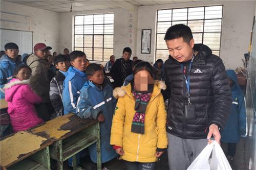 熊中华看望小你外,并为她送去学习用品