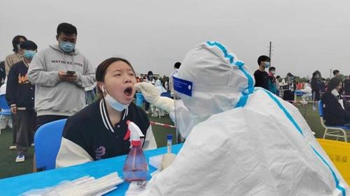 “请有序排好队,保持一米距离……”10月7日下午,在成艺大学操场上设立的核酸集中采样点,返校学生正有序地进行核酸检测。为做好外防输入,全县设置了多个集中核酸采样点,对所有返校学生进行核酸检测。