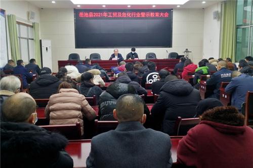 12月15日上午,在广安市岳池县应急管理局,县安办主任、县应急管理局局长蒲锦荣主持召开全县2021年工贸及危化行业警示教育大会。84名企业负责人及安全员参加会议。