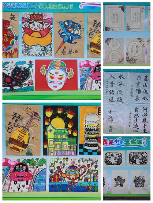 此次活动,除了歌咏展示外,还有文艺作品展示。全校师生踊跃参与、认真对待、精心准备,呈现了一幅幅精美的书法和美术作品,展现了学校喜人的课后服务成果。