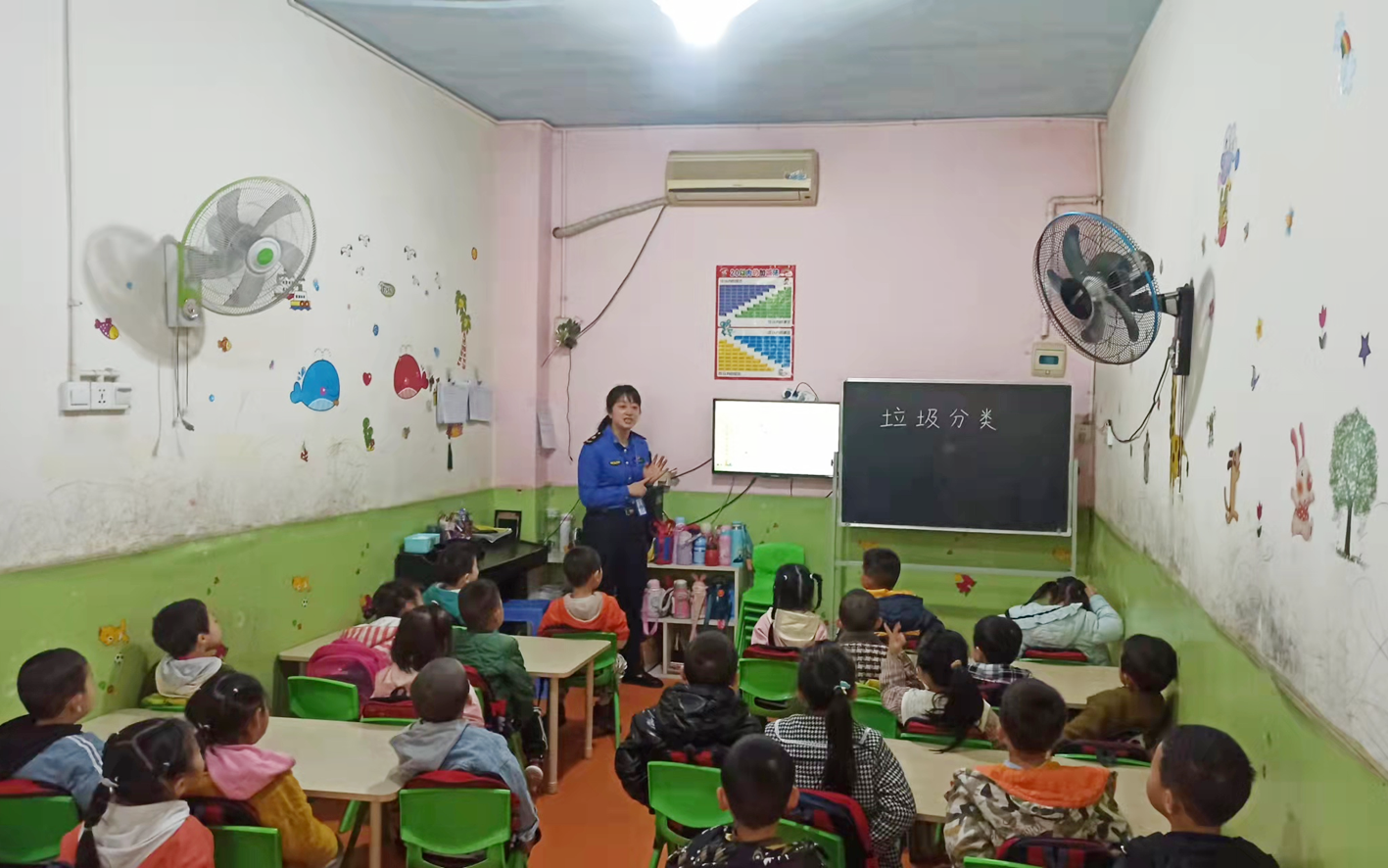 为增强小朋友环保意识,实现“教育一个孩子,带动一个家庭,影响一个小区,文明整个社会”,4月6日,广安市岳池县城市管理综合执法大队巾帼志愿服务队走进成果幼儿园“环保小课堂”,开展“垃圾分类我先行”环保宣传主题课。