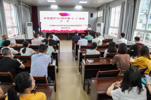 7月1日,眉山市东坡区农业农村局组织党员在四楼会议室召开庆祝建党101周年暨“七一”表彰大会。与会党员在党旗下庄严宣誓,重温入党誓词,激励自己不忘初心、牢记使命、永远奋斗。铿锵的誓词,让党员们热血沸腾,仿佛重回当初加入党组织的那一刻,更加坚定了自己的理想信念和党性认识。