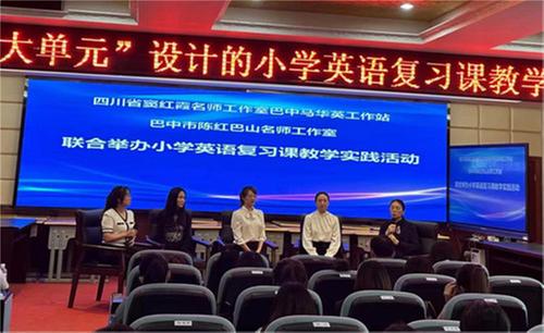 为充分发挥名师团队的引领、示范、辐射作用,顺利推进省市名师工作室建设,共建共享优质教学资源,5月25日,省窦红霞名师工作室巴中工作站、陈红巴山名师工作室在巴州区第十一小学校联合举办基于“大单元”的小学英语复习课教学实践研讨活动。巴中市教科所英语教研员唐宗、巴州区教研室英语教研员杨丁宁 、巴州区第十一小学校党总支书记、校长朱秀明等领导和省窦红霞名师工作室巴中工作站全体成员、巴中市陈红巴山名师工作室全体成员以及来自各县区学校的60 余名英语老师参加活动。