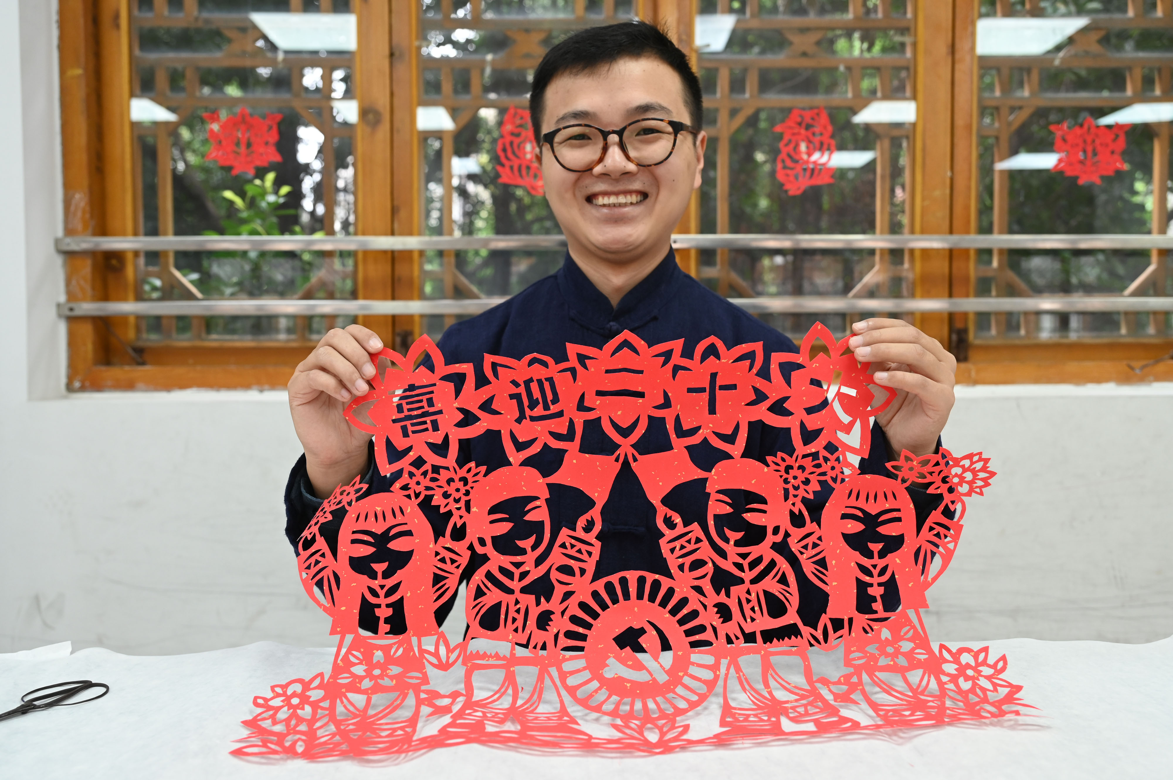 在党的二十大即将召开之际,内江市东兴区初级中学美术教师、民间剪纸艺人李有生创作了“喜迎二十大,永远跟党走”系列剪纸作品,每幅作品主题鲜明、饱含寓意,以最朴实的手法表达对党的二十大胜利召开的热切期盼,以及对祖国繁荣富强的美好祝福。