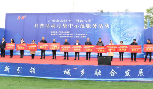 3月28日,广安市2023年“科技之春”科普活动月集中示范服务活动在广安区花桥中学举办,市市场监督管理局党组成员、副局长杨小红率科技信息科、药品科、新闻宣传科等相关科室人员参加,并代表市局现场向广安区花桥镇捐赠助农资金5000元。