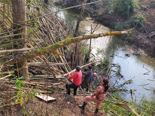 据悉,本次河道集中清理工作持续一周,九龙街道、朝阳街道共计出动30余人次对河道进行清理,砍伐清理河道两岸竹木约5吨,打捞阻碍河流的枯枝落叶近1吨。
