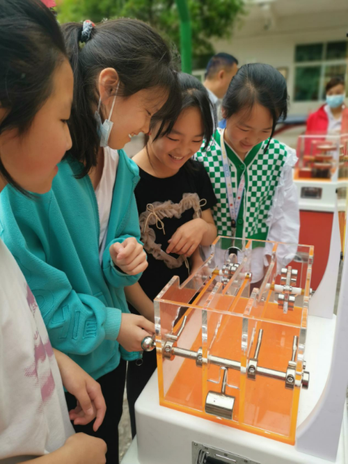 二是展科教,培创新能力。科普大篷车科教展品20种,内容涉及数学、光学、力学、电学、电磁学等多种学科。组织科普志愿者为孩子们进行讲解,并带领他们现场操作和体验,理解“VR虚拟现实、电磁现象、运动与力、机械传动、视觉偏差”等科学原理,开阔学生眼界和视野,激发他们探索科学奥秘的兴趣。让孩子们感受了一场集科学性、趣味性、参与性为一体的科普盛宴。