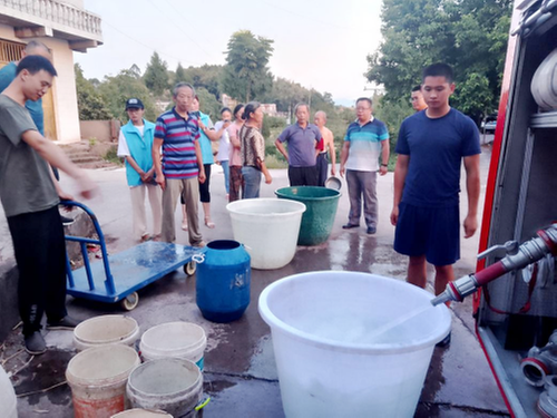 “真的非常感谢,水缸水都见底了,中午烧饭就感觉困难,还好消防员给我们送水来了,不然晚饭就无法煮了!”面对送来的清水,接满水桶的村民胡中俊感激道。