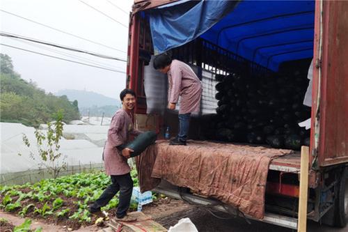 时下,正值冬瓜采摘高峰期。近日,记者在广安市协兴园区浓溪镇围子村五组冬瓜种植基地现场看到,一排排绿油油的冬瓜整整齐齐的躺在地上,长势喜人。而作为广安市浓溪言姣包包青菜种植专业合作社和广安市祥绿源种养专业合作社负责人、浓溪镇围子村党支部书记彭先祝和他的妻子郭言娇正带领十余名工人正忙着将地里成熟的冬瓜采摘、搬运、装车,现场一派热闹的丰收景象。