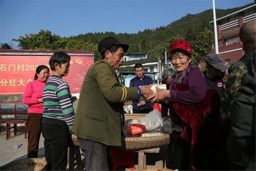 “每年都可以分红,这是我们村第二次分红了,让我们老百姓得到了实惠,日子越过越好。”村民姚长银从背篼里提起一袋挂面笑呵呵地说道。