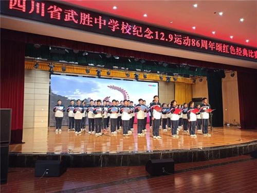 为缅怀历史,激发学生历史使命感和社会责任感,12月6日,四川省武胜中学校于在学术厅举办以“青春跟党走 颂读新时代”为主题的纪念12·9运动86周年红色经典颂读比赛。
