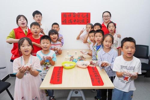 9月10日,在广安华蓥市古桥街道古桥社区童伴之家里,志愿者们与留守儿童一起做月饼、猜灯谜,让孩子们在温馨的氛围里欢度中秋佳节。