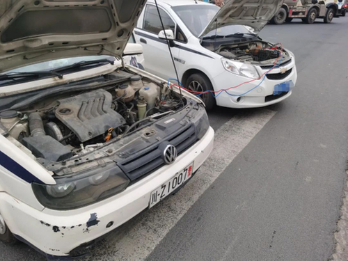 10月7日下午,交警大队在疏导交通时,发现一辆汽车停在道路边,执勤交警上前询问情况,得知该车辆电瓶亏电,无法启动,遂协助车主将车辆推到路边,并用警车对该车辆进行搭电救援。