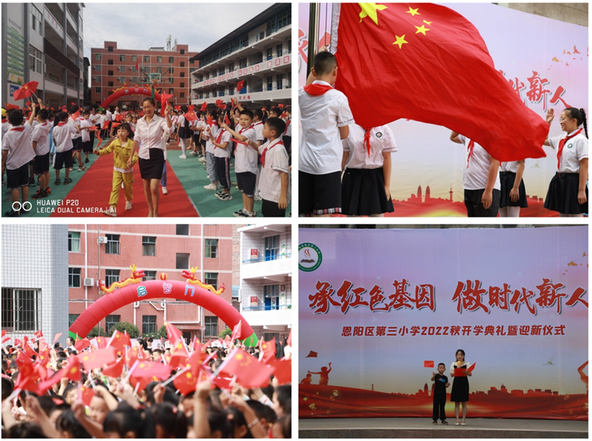9月5日上午,巴中市恩阳区第三小学举行了以“承红色基因·做时代新人”为主题的2022年秋季开学典礼暨迎新仪式,全体师生参加活动。