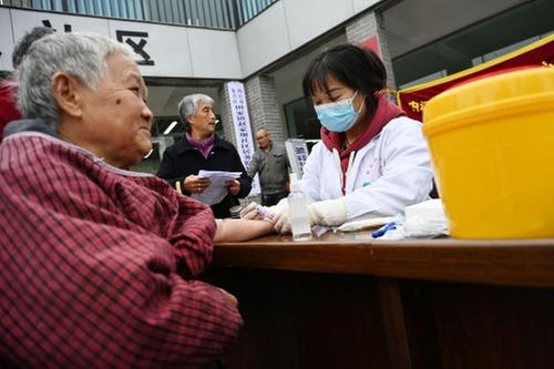 3月29日,内江市东兴区田家镇赵家坝社区,家庭医生为社区老人义诊。