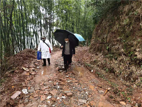 中山镇王沟党员、队长、村卫生员白平安(三重身份)每天准时给管控人员测体温两次