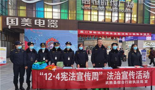 为弘扬宪法精神,维护宪法权威,积极营造良好法治氛围,近日,广安市武胜县综合行政执法局在融恒时代广场开展 2021年“宪法宣传周”活动。