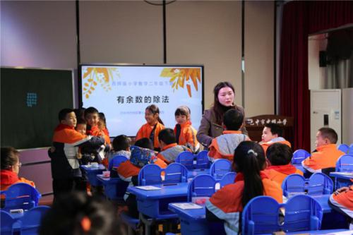 巴中市中坝小学教师曾瑞,巴州区第七小学教师贾芬分别执教研讨课例《分数的意义》《有余数的除法》。