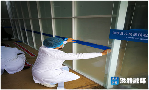 县人民医院医务者自己动手规范发热门诊标识