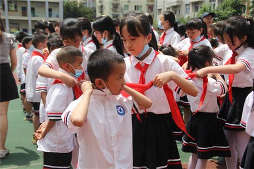 6月8日,巴中市巴州区第六小学举行了“喜迎二十大,争做好队友”一年级新生入队仪式,一年级第一批140名同学光荣加入少先队。