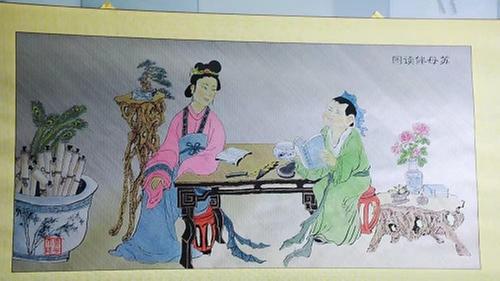 展厅悬挂的一幅长约2米、宽1米的竹编精品《苏母伴读图》,就是陈云华今年创作的新作品。他通过精妙的竹编技艺,生动地再现了苏母育子的精彩瞬间,既歌颂了优秀的母亲,又展现了三苏文化的优良家风。