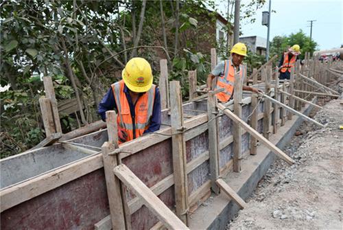 6月14日,在内吴路内江市东兴区田家镇段,筑路工人正在加班加点推进项目建设。
