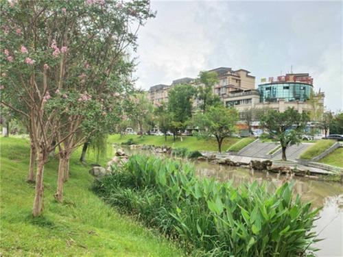 在城市品质上,该县先后建成了“引青入城”工程、龙吟滩湿地公园。“引青入城”工程,将青衣江河水引入城区水系,做到“流水化腐”,一湾活水,让城区水系变成了“生态河”,成为水通、路畅、岸绿的绿色走廊,成为集生态、游赏、康体于一体的带状公园。龙吟滩湿地公园是集防汛、休闲、文化、生态于一体,按照“水利、生态、人文"的理念,构建了自然生态的湿地水系景观。完善的慢行交通及绿道系统,在为市民、游客提供多样化的游憩服务及完善的配套设施的同时,有效提高城区青衣江南岸防洪除涝减灾能力和水生态环境保护能力。