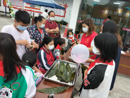 活动现场,孩子们戴着鲜艳的红领巾朗读了爱国文章,歌唱祖国。志愿者们还与孩子们一起包粽子,大家吃着自己做的粽子,心里十分甜蜜,现场一片欢声笑语。