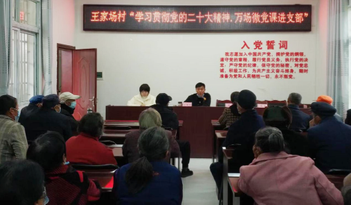 近日,广安市岳池县花园镇王家场村党总支组织全体党员和部分村民在村党群活动中心开展“学习贯彻党的二十大精神·万场微党课进支部”活动,专题学习贯彻党的二十大精神,助力乡村振兴。