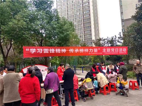 为弘扬和践行雷锋精神,关爱群众身体健康,传播社会正能量,广安经开区枣山街道旭岩社区在学雷锋纪念日联动广安新迪眼科医院、枣园物业等开展了“学习雷锋精神 传承榜样力量”主题党日志愿宣传、义诊服务活动,20余名志愿者参加活动。