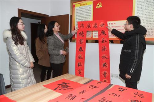 春节来临,廉风劲吹。广安区于近期启动了“廉政春联进机关活动”。活动开展以来,广安区纪委监委、总工会邀请广安区政协诗书画院、广安区书法家协会的书法爱好者先后走进龙台镇、石笋镇、区财政局、区水务局等地方和单位,免费为党员书写近1000幅廉政文化春联和“福”字,让廉洁之风“吹”进机关单位,切实营造“风清气正、敬廉崇洁”的过节氛围。