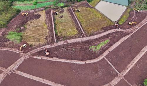 晴好天气里,走进仁寿县彰加镇铧炉社区的高标准农田建设项目施工现场,只见挖掘机来回运转不停,在建设好的田间地头,一条条田埂不见了,原先大小、高低不一的田块也变得平坦又宽阔。