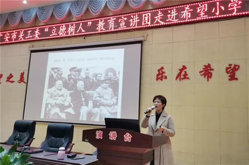 为了全面提高学生综合素质,弘扬和培养学生爱国主义情怀,11月30日下午,由广安市关工委组织的“立德树人”教育宣讲团来到了广安市广安区希望小学。为师生们奉上了一堂以“感恩祖国”为主题的德育大讲堂。