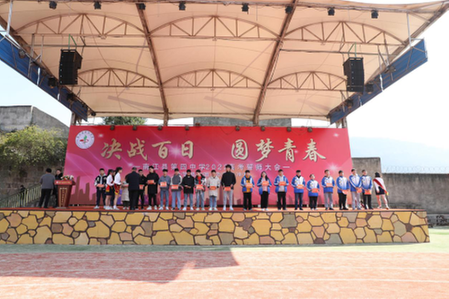 为进一步激发高三师生决胜高考的斗志,引导师生以更加饱满的热情和必胜的信心迎接2022年高考,2月26日,巴中市南江县第四中学举行2022届高三年级百日誓师大会。