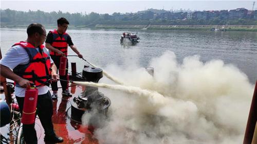 为进一步做好汛期安全防范工作,4月26日,广安华蓥市地方海事处组织辖区船主、船员、广蓥砂石有限责任公司开展了水上交通安全应急演练。此次演练在明月水域成功举办,参演船艇5艘,参演人数18人,历时约2小时,演练科目为“救助落水人员”“汛期船舶失火”和“拦截大型漂浮物”。