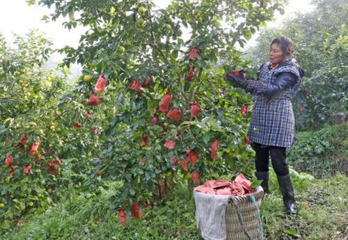 12月21日,广安市广安区兴平镇文明村的柠檬产业园里,清香扑鼻而来,村民们手拿剪刀正忙着采摘柠檬。