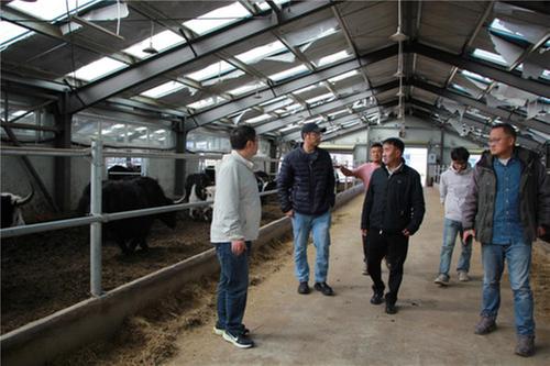 在雅克牦牛标准化养殖基地,专家团深入牛舍观察牦牛毛色、体型与活动状态,初步评估群体健康水平;针对腹泻、传染病高发问题,详细询问防控流程与用药细节,现场讲解病因识别、症状判断及合规用药标准;同时了解冬季饲草种类、储备量及饲喂效果,精准定位供应短板,为冬季养殖稳定提供方向。