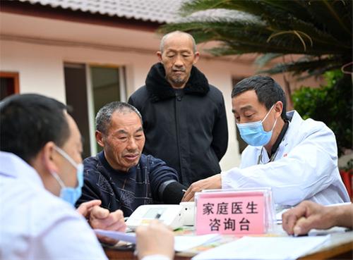 3月26日,在内江市东兴区平坦镇敬老院,家庭医生正为老年人免费查体看病。