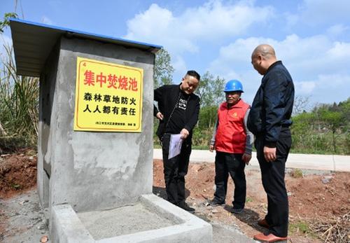3月30日,内江市东兴区高梁镇柏子山村,党员干部和志愿者利用“集中焚烧池”的投放使用,引导群众文明祭祀,环保过节,守护森林安全。