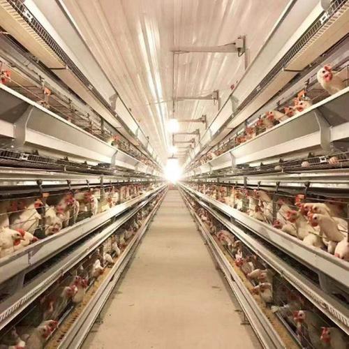 走进蛋鸡养殖场,只见消毒室、饲料加工车间、产蛋车间、集蛋库、鸡粪发酵车间……错落有致地排列着。走进其中一个产蛋车间,整整齐齐排着六行六列格子,格子里站立着一只只精气神十足的母鸡,看上去煞是可爱。