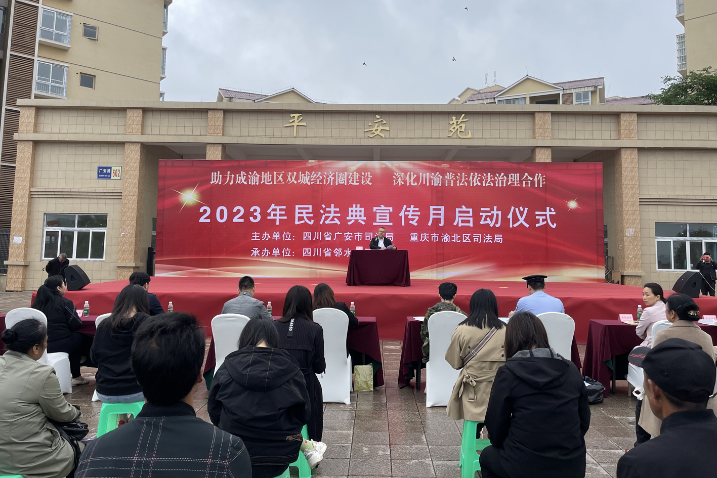 与“典”同行,让民法典“动起来”。联合重庆渝北区司法局、广安市司法局在川渝高竹新区举行2023年民法典宣传月主题活动启动仪式,启动仪式后在川渝高竹新区开展民法典专题讲座,提供法律咨询,发放法治宣传资料,让普法宣传“动起来”。川渝两地重点执法部门、“法律明白人”共180余人参与本次活动,发放宣传资料1000余份。